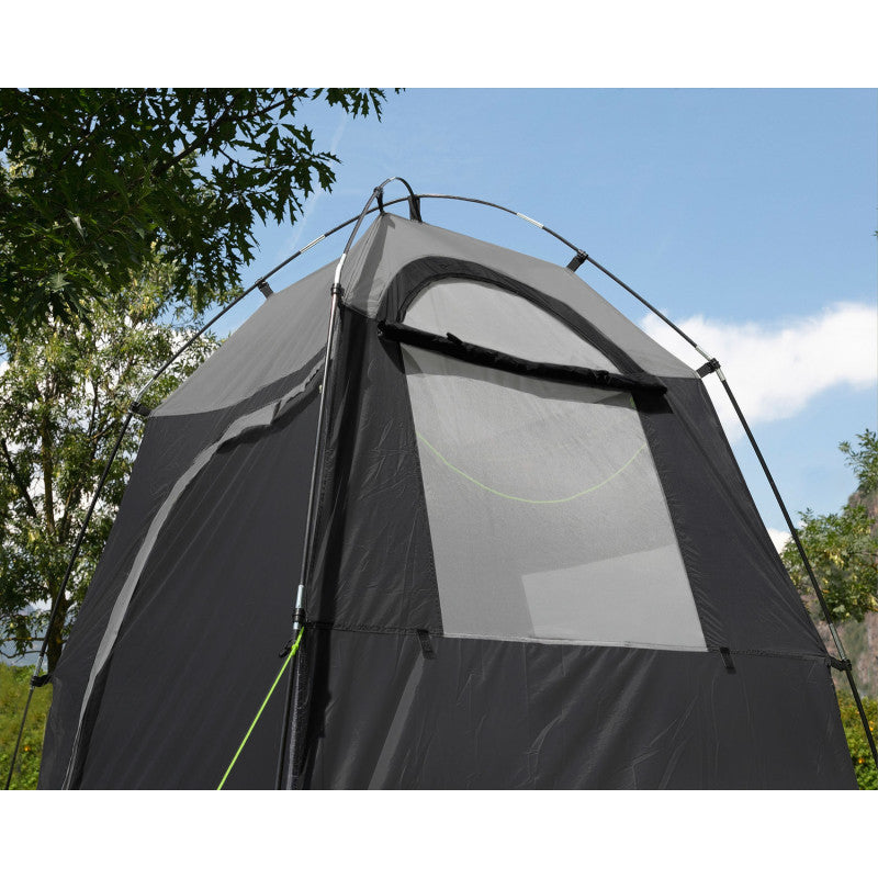 Cette cabine annexe est équipée d'un petite fenêtre d'observation pour apporter de la luminosité ainsi qu'une porte zippée pour garantir votre tranquillité. Elle est livrée avec son sac de rangement et tous les accessoires nécessaires à son installation pour un usage pratique et immédiat.