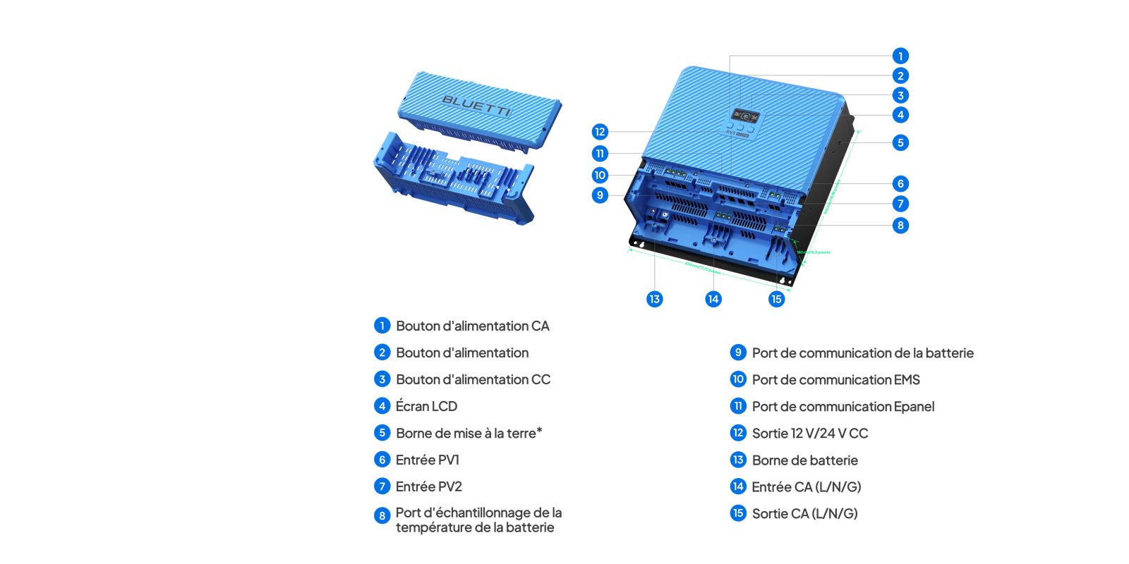 Ce pack complet RV5 Bluetti est une solution d’alimentation autonome tout-en-un, pour camping-cars, vans, bateaux ou installations hors réseau. Il associe le hub RV5 comme cœur du système et la batterie LiFePO₄ B4810, qui offre une énergie fiable et durable pour plus de 6 000 cycles.