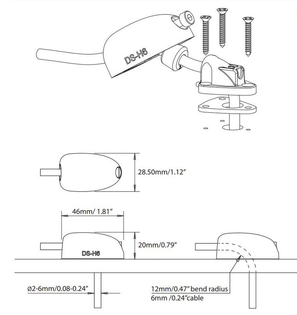 Son design moderne et ultra-compact (46 x 28,5 x 20 mm) s’intègre en toute discrétion, tout en offrant une étanchéité IPX68 durable. Il s’adapte parfaitement aux câbles de 2 à 6 mm de diamètre. La base équipée de prisonniers (écrous intégrés) permet un montage simple, rapide et sans outils spécifiques, tout en facilitant l’ouverture pour un nettoyage ou un remplacement sans compromettre la sécurité.