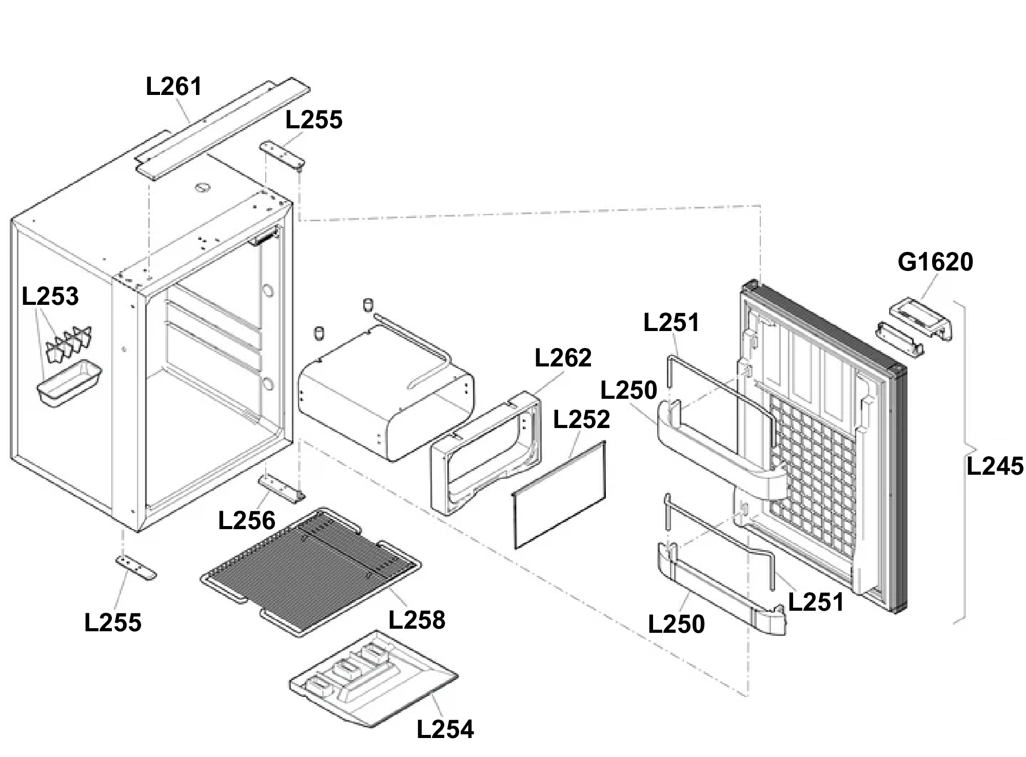 - Bac à glaçons : L253