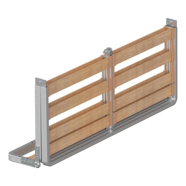Sa structure légère, composée d'un cadre en aluminium et de lattes en bois, garantit solidité et confort. Le design pliant permet de libérer facilement de l'espace pour d'autres activités ou rangements et sa compatibilité avec des dimensions standards de campervans (matelas non inclus), facilite son installation dans différents types de véhicules.